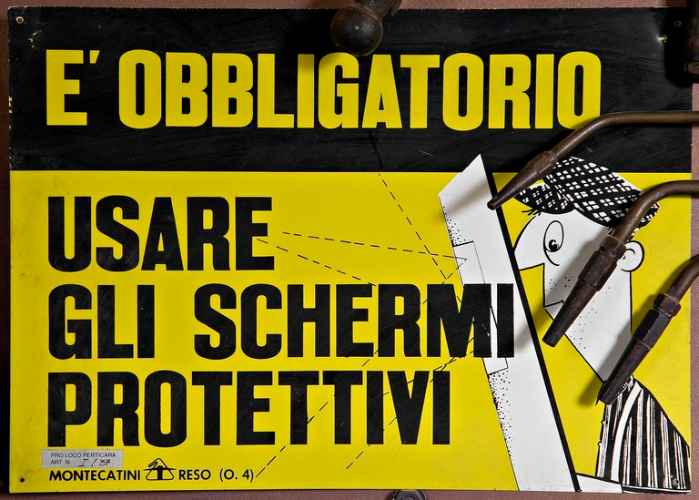 Il cartello prescrive l'obbligo di usare calzature di protezione.