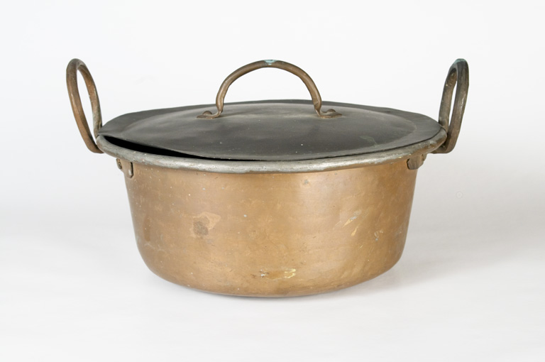 Casseruola impiegata soprattutto per arrostire carni. Come molti contenitori, recipienti o pentole in rame, anche questa presenta il bordo superiore rinforzato mediante ribattitura della lamina in rame attorno ad un tondino in ferro. Raffaella Bertani racconta che le pentole in rame presenti in museo appartenevano ai suoi nonni, dai quali le ha ereditate. Questo tipo di casseruole, ovali e tonde, non erano molto comuni nelle case di allora; la varietà delle forme e delle dimensioni, adattabili a qualsiasi cottura e a un diverso numero di commensali, dimostrava le capacità economiche, la raffinatezza e l'estrema organizzazione della famiglia, che in questo modo si inseriva perfettamente nello stile di vita borghese. La difficoltà di collocare cronologicamente e geograficamente un utensile in rame è notevole, in quanto sul rame non c'è mai stato l'obbligo di marchiare o punzonare per identificare bottega e/o luogo di produzione, inoltre certi modelli, come questo che stiamo schedando, durarono per molto tempo anche senza modifiche. Raffaella Bertani non ricorda di aver mai visto cucinare con questo utensile, ricorda invece che molti oggetti e utensili in rame (tranne forse la tortiera e qualche padella) erano esposti, nella sala da biliardo al piano terra, su enormi mensole costruite apposta.Fonti della documentazione 3/4