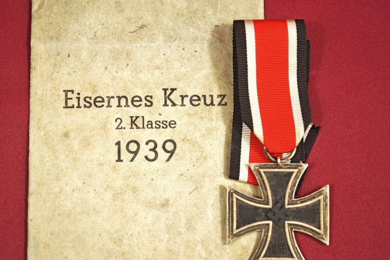 Croce di Ferro di seconda classe. Alla base della decorazione il nastrino con i colori nero, bianco e rosso del III Reich.
