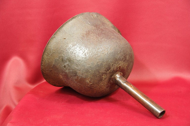 imbuto ricavato da un elmetto tedesco della seconda guerra mondiale, forato sulla sommità, a cui veniva saldato un tubo.