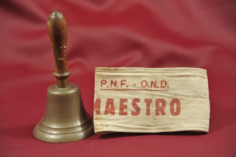 Sulla sinistra la campanella e sulla destra la fascia da braccio indossta dagli insegnanti