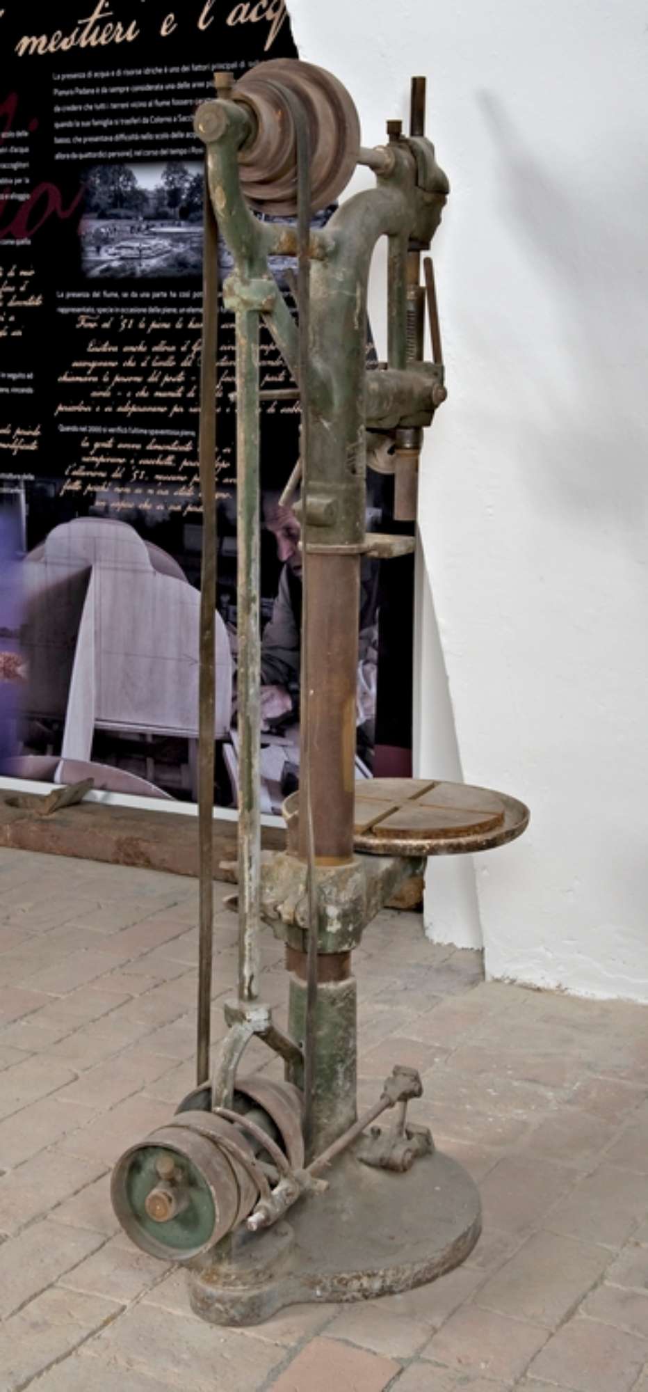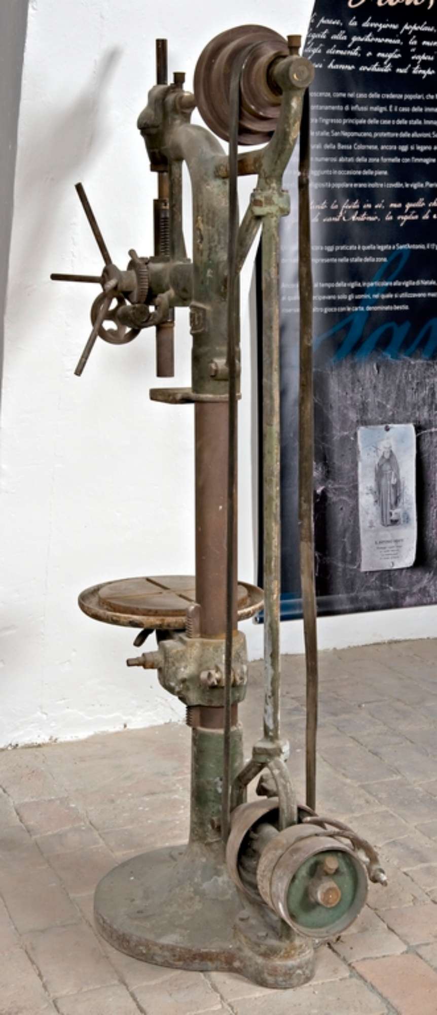 Sul piano in ghisa venivano posizionati i pezzi da lavorare, e grazie al movimento meccanico del trapano, azionato da una manovella, si produceva il movimento (dall'alto verso il basso) del "mandarino", ovvero l'albero rotante sul quale venivano posizionati gli utensili.