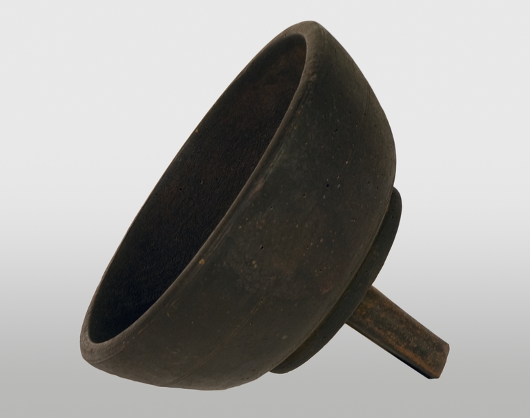 Imbuto a forma di calotta in legno, nel foro centrale è inserito il cannello in ferro.