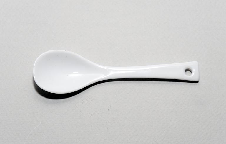 Cucchiaio da assaggio in porcellana con astuccio in argento.