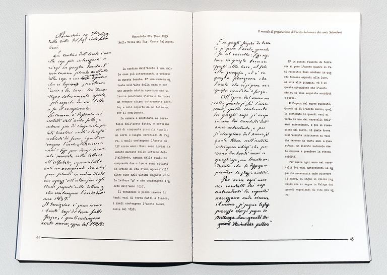 Copia del "Metodo di preparazione dell'aceto balsamico dei conti Salimbeni" del conte Giorgio Gallesio.