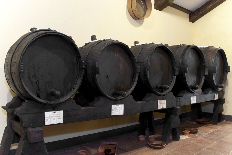 Cerchi in ferro fissati con borchie appuntite. I vaselli presentano le doghe sporgenti predisposte per facilitare il trasporto.