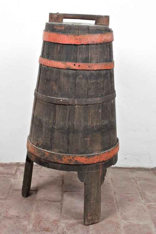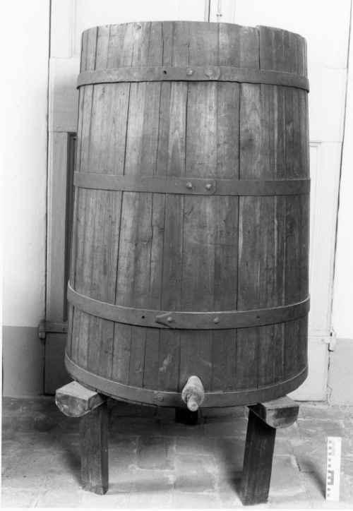 Vasello a forma di piccolo tino. Sull'etichetta metallica l'indicazione T.2. Inventariato come elemento della batteria "U".
