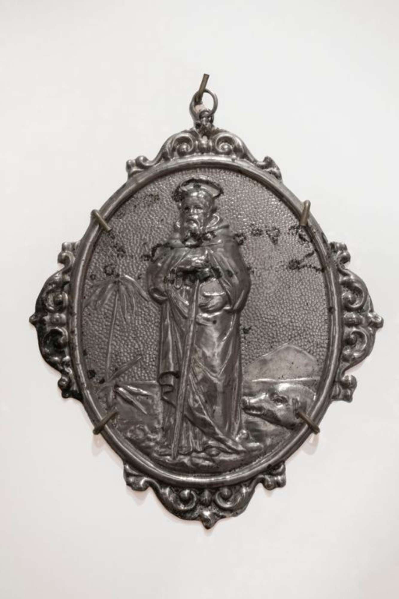 Raffigura S. Antonio abate con il maiale ai suoi piedi