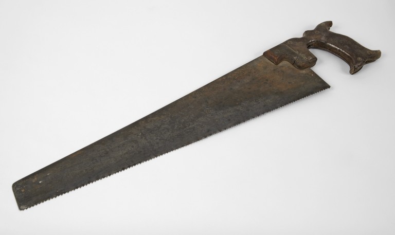 Sega a lama libera dentata di forma trapezoidale con impugnatura sagomata fissata nella parte più larga della lama.