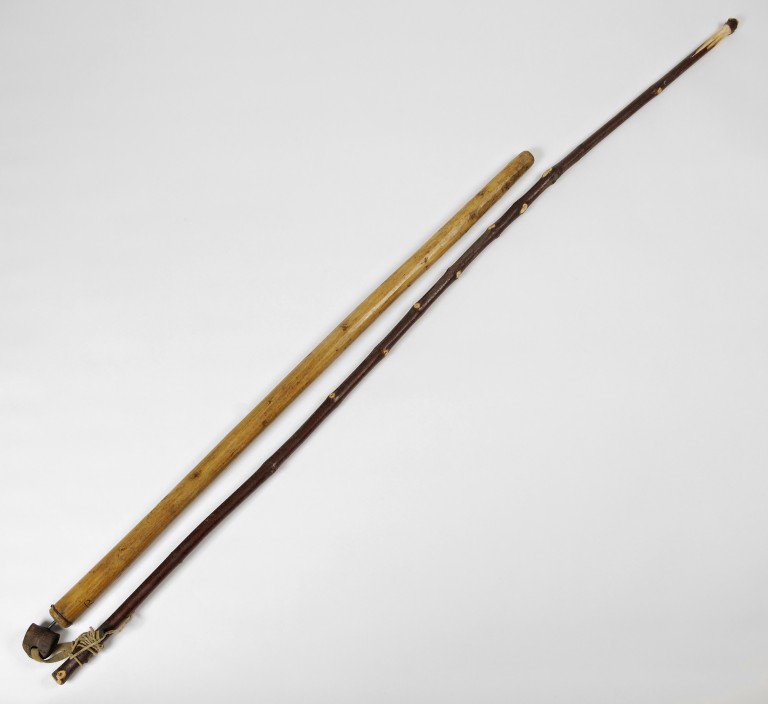 Strumento formato da un bastone piuttosto lungo, all'estremità del quale è legato, con una striscia di cuoio e un perno in metallo e rinforzo in spago, un altro bastone, più corto e più pesante.