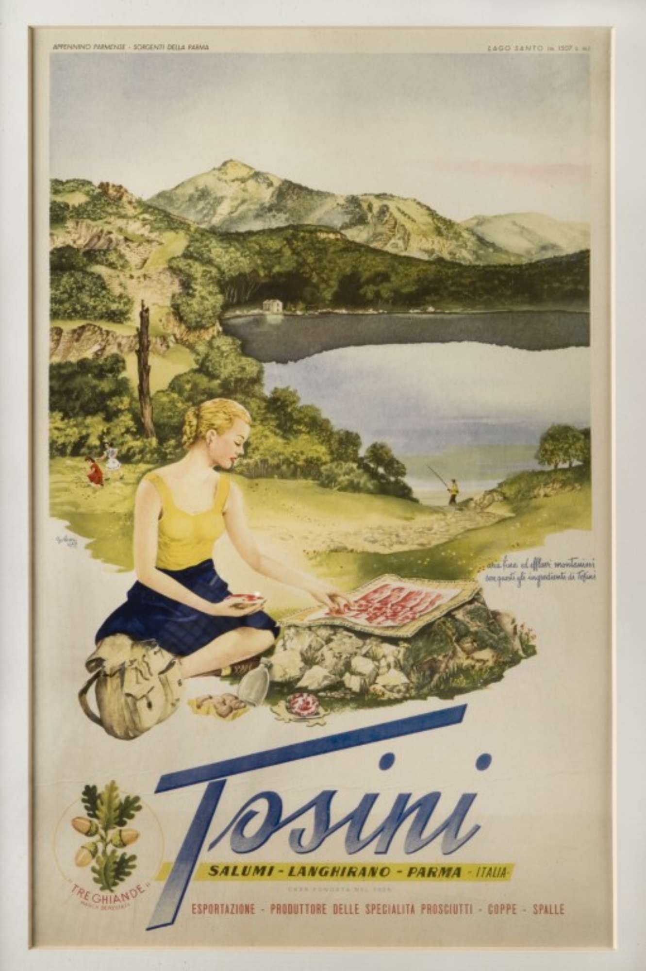 Secondo la documentazione il disegno del manifesto fu realizzato dalla moglie del titolare della ditta Tosini e raffigura la sua famiglia intenta ad un pic-nic.
