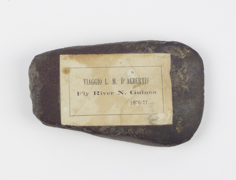 Il manufatto fu portato in Italia dall'esploratore Luigi Maria d'Albertis che esplorò il fiume Fly, (uno dei più grandi della Nuova Guinea), tra il 1875 e il 1876.