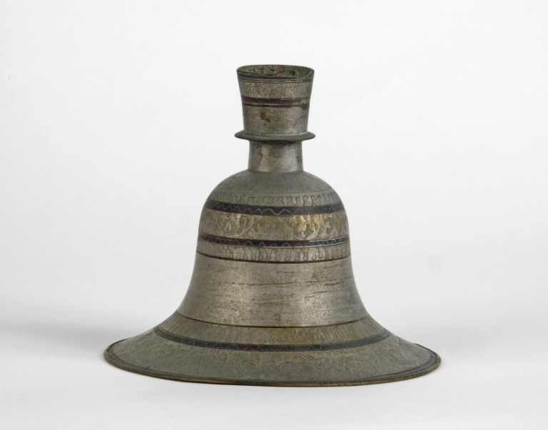 L'oggetto, di forma campaniforme, per somiglianza tipologica e per l'apparato figurativo può essere assimilato alle basi per huqqa(narghilé) tipiche in India. La base è chiusa, mentre il supporto per applicare l'huqqa è aperto. Presenta decorazioni fitomorfe alla base, nella parte alta della campana e sul supporto superiore, intervallate da altre strisce decorate.
