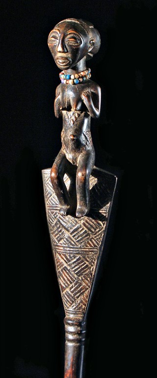 Secondo le informazioni raccolte presso il museo, i Luba vengono fatti risalire al grande impero fondato nel 1585 dal re Kongolo. Il nipote e successore, Kalala Ilunga, diede all'impero una grande espansione, annettendosi nuovi territori, che venivano governati da capi territoriali, chiamati Bamfumu, mentre il re veniva chiamato Mulopwe. Guerre interne portarono alla disintegrazione dell'impero verso la fine del XIX secolo. In seguito vi furono invasioni dall'Angola e scorribande da parte degli Arabi cacciatori di schiavi e, per ultimo, l'arrivo dei Belgi che portò al collasso totale dell'impero ed alla sua divisione in piccoli regni territoriali. La popolazione di questo gruppo è di circa un milione. L'arte Luba è legata all'ambiente di corte ed ha saputo creare oggetti di grande bellezza che hanno influenzato i popoli vicini. All'interno della società, gli artisti godevano di grande considerazione ed erano autorizzati a portare sulle spalle la speciale ascia, simbolo di prestigio ed autorità. Una delle caratteristiche più sorprendenti dell'arte Luba è la onnipresenza di figure femminili, dovuta non a criteri puramente estetici, ma al ruolo che la donna ricopre nella società. Ruolo che è insieme reale ed anche legato al mito della creazione ed a quello della fondazione del clan. Infatti, "Vilye" fu il primo spirito femminile, fondatrice del clan e garante della stirpe e della fertilità. Lo stile Luba è un'arte di curve dai volumi delicati ed armoniosi. Le figure hanno proporzioni comparativamente naturalistiche. La testa è rotonda, la fronte bombata, una fascia formata da solchi isola l'acconciatura (vi sono due tipi di capigliature: una che prolunga la testa con una sorta di parrucca allargata verso l'esterno e terminante con un motivo cruciforme; la seconda che forma una massa di capelli a vari livelli, chiamata "capigliatura a cascata"); gli occhi sono a chicco di caffè, le orecchie piccole; la superficie levigata ha una patina scura. Grande importanza viene data ai dettagli: il modellato del tronco e della schiena in particolare è sorprendente; le scarificazioni (tempie, petto, zona ombelicale, cosce) e l'acconciatura indicano il rango nella gerarchia. La maggior parte degli oggetti provenienti dalla Repubblica Democratica del Congo sono stati acquistati da Padre Andrea Tam, per molti anni in missione nella zona del Kivu. Insieme alle collezioni provenienti da altri paesi qualificano in maniera eccellente il Museo Etnografico e testimoniano la presenza e il lavoro dei Missionari Saveriani.