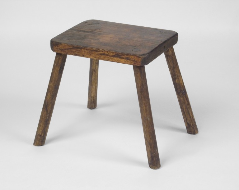 Lo sgabello leggero e maneggevole, ma molto stabile, veniva spostato dal mungitore vicino alla mucca da mungere.