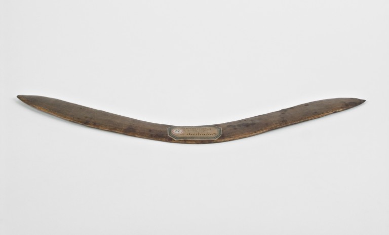 Ricavato da un unico pezzo di legno è leggermente arcuato. Entrambe le superfici sono state accuratamente lavorate per conferire aereodinamicità all'oggetto. Le due estremità sono appuntite. La superficie è ben levigata.