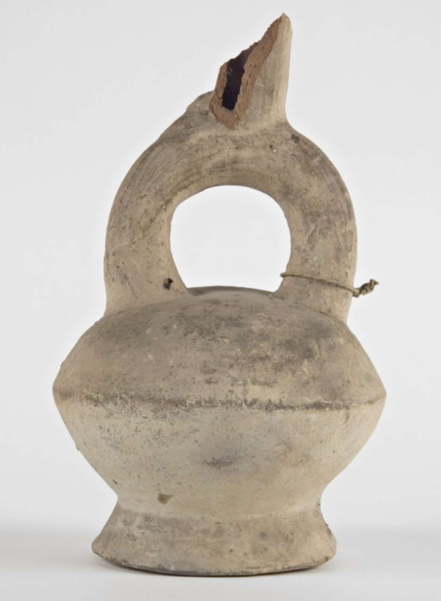 Il nucleo americano è stato donato al Museo nel 1937 dal Dottor Giuseppe 'Cita' Mazzini, medico imolese che soggiornò in America Latina (Cile, Equador, Perù) tra il 1904 e il 1921, periodo in cui acquisì la sua collezione. Fu egli stesso a stendere il primo inventario degli oggetti americani. Quando nel gennaio del 1945 i bombardamenti alleati colpirono il palazzo in cui erano conservati i beni donati da Mazzini, ne distrussero una parte e danneggiarono alcuni tra i manufatti rimanenti oggi depositati presso il Museo Scarabelli.La decorazione, tipica della cultura Chimu, contrasta con l'ingobbio biancastro, attribuibile alla cultura Chancay, e rende il manufatto particolarmente interessante perché determina l'influenza di una cultura sull'altra.Si tratta di una produzione della cultura Chancay con influenze Chimu, stanziata sulla costa centrale del Perù.