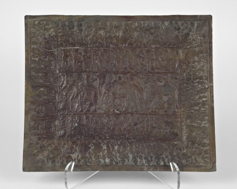 La collezione orientale fu raccolta nel 1902 dal professor Francesco Lorenzo Pullé, docente di sanscrito dell'ateneo bolognese, durante il viaggio di ritorno dall'Indocina, dove Pullé si era recato per partecipare al XIV Congresso Internazionale degli orientalisti, tenutosi presso l'appena sorta École Française d'Extrême-Orient, presso la quale egli rappresentava ufficialmente l'Italia, insieme al sinologo Ludovico Nocentini. Durante l'anno accademico 1907-1908 Pullé fondò il "Museo di Etnografia Indiana", che fu aperto nelle stanze del Palazzo dell'Archiginnasio assegnate come appartamento al bibliotecario – e rimaste vuote in quegli anni. Aggregato come sezione al Gabinetto di Glottologia dell'Università di Bologna, il museo, sorto sul modello del Museo Indiano di Firenze di Angelo De Gubernatis, fu chiuso nel 1935 alla morte di Pullé. Oltre alla collezione raccolta da Francesco Pullé in India, negli anni di attività del museo furono acquisiti manufatti donati dal conte Francesco Pizzardi, che aveva soggiornato in India nel 1877, e dal signor Pellegrinelli. Riguardo a queste donazioni non si hanno purtroppo notizie più precise. La produzione artigianale di manufatti ornamentali in metallo era realizzata su lamine lavorate per mezzo di due tecniche, l'incisione e la decorazione a sbalzo. Poi, per eliminare le piccole imperfezioni – legate a una metodologia che sovente non prevedeva il disegno delle forme prima della realizzazione grazie all'abilità degli artigiani – gli artigiani cesellavano i manufatti e ne levigavano la superficie.