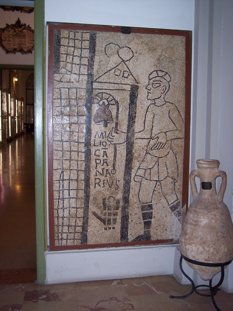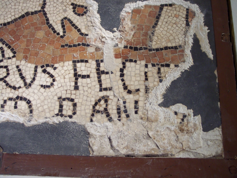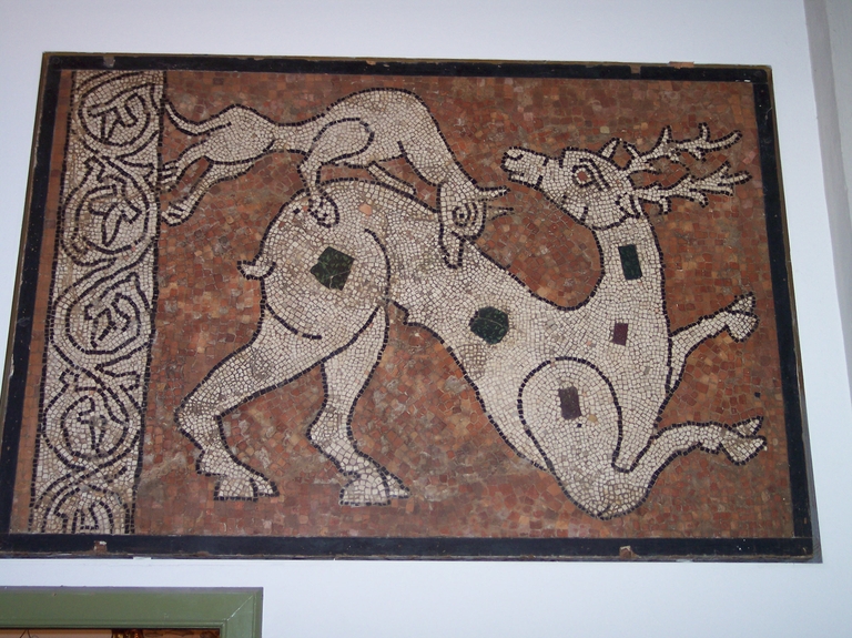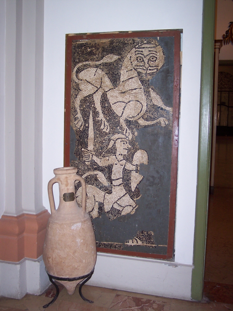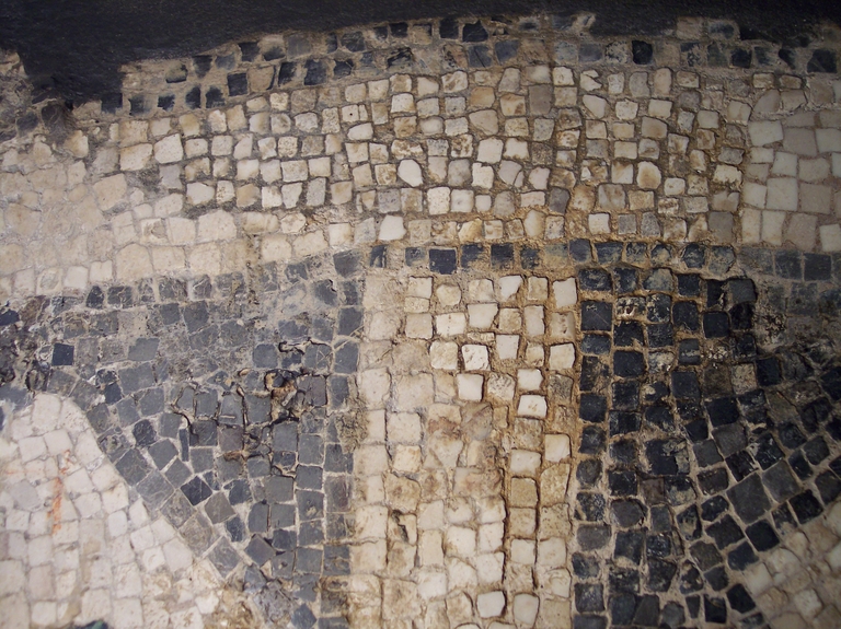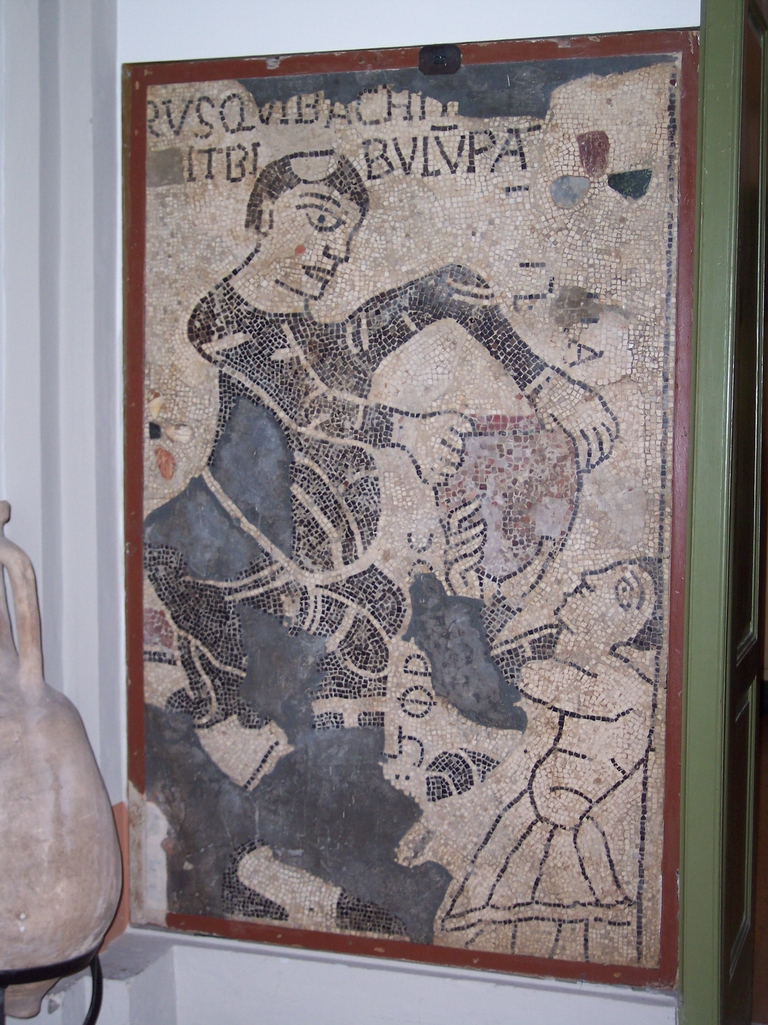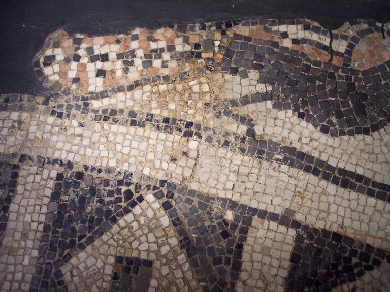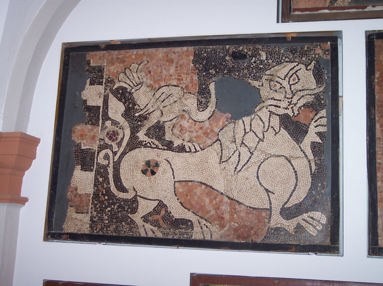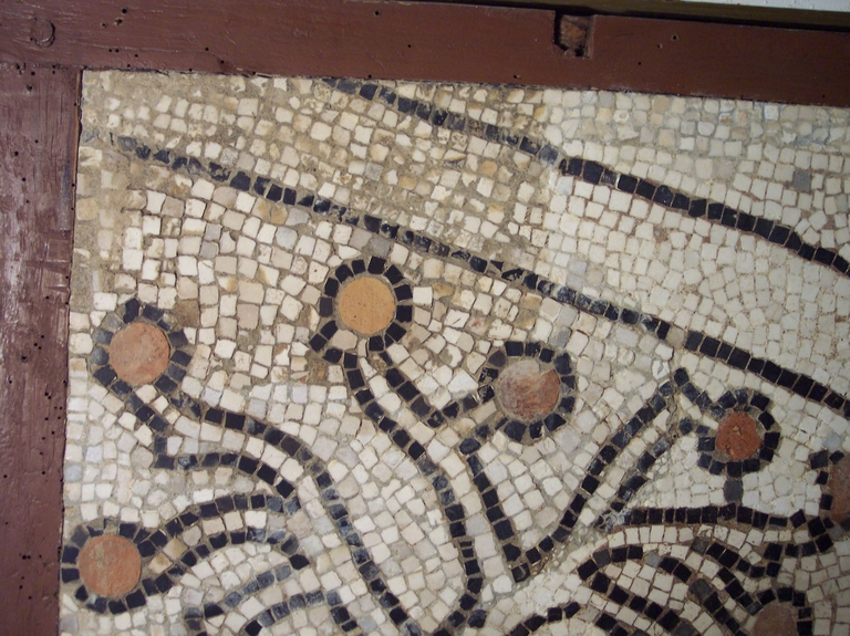 •Integrazione delle lacune dei tessellati con malta di calce aerea addizionata di polveri di marmo colorate, con l’aggiunta di una piccola percentuale di resina acril33; concordato con la DL che l’aspetto finale fosse finalizzato a conservare l’effetto estetico della esposizione ottocentesca. Tolte le vecchie stuccature lucide di colore nero, probabilmente applicate mezzo secolo dopo la prima presentazione, esse sono state sostituite con stuccature sempre di tono piuttosto scuro ma di aspetto opaco, non condotte sottolivello come abbiamo fatto per i mosaici della nuova ala romana dello stesso museo, ma portate pari alla superficie del tessellato come le aveva pensate il Chierici.
