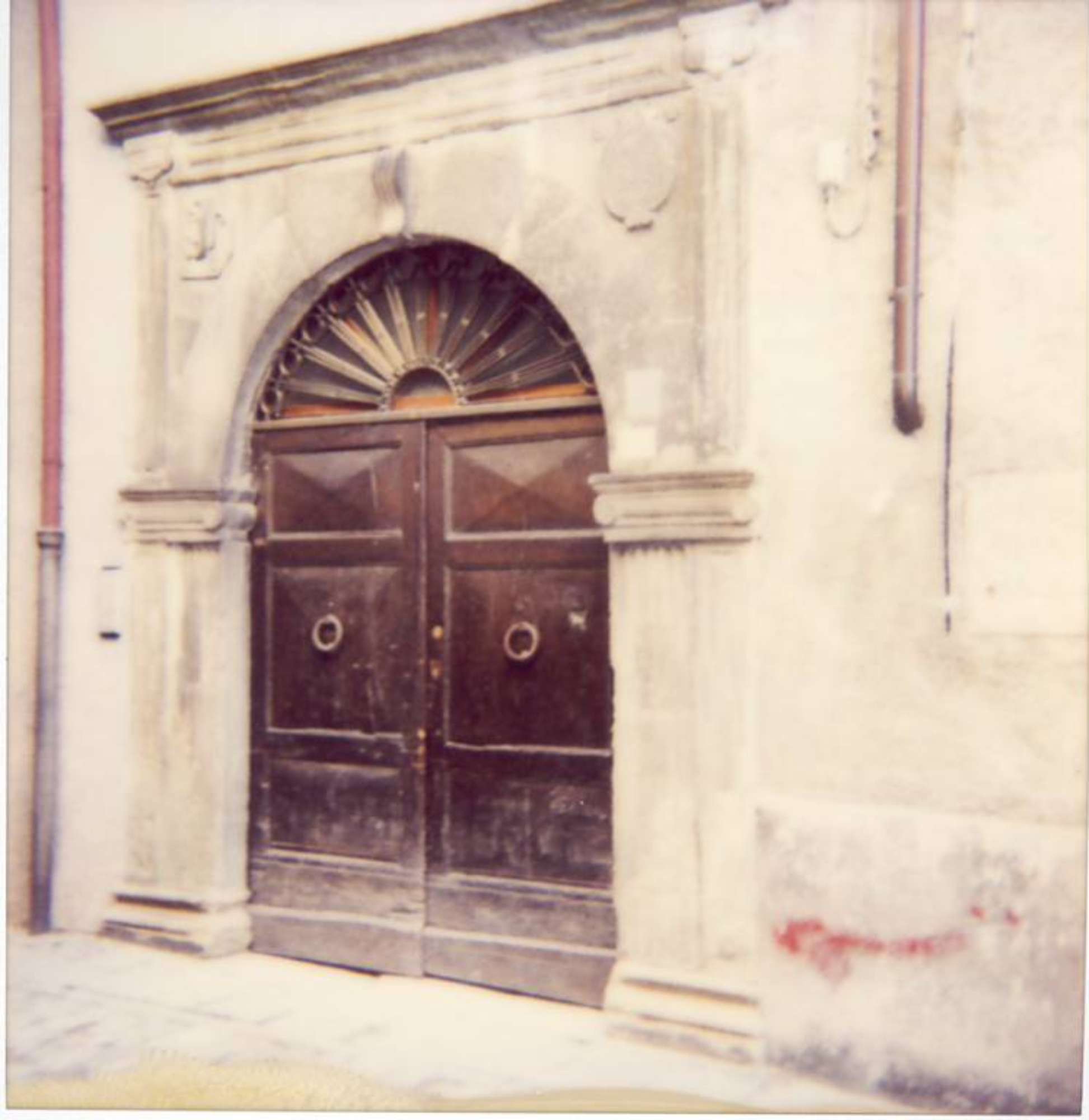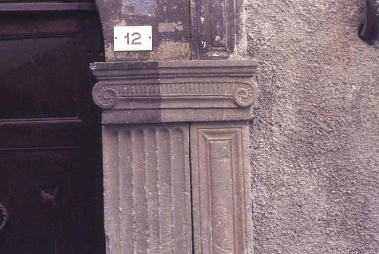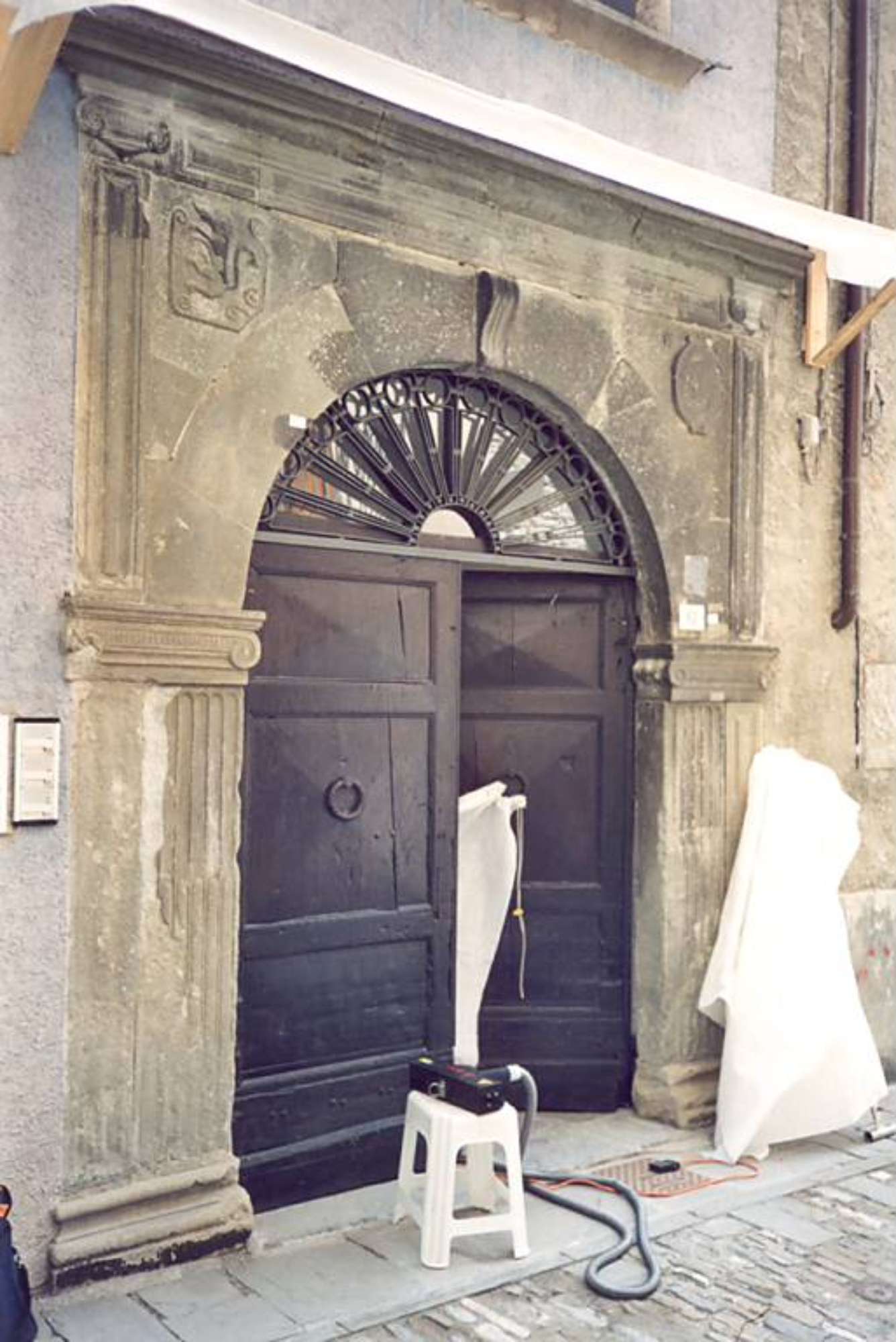 rimozione del filo elettrico dal portale di via Roma che era stato fissato nella parte alta a ridosso dello stemma e dal portale di via Rossi è stato rimosso il numero civico che si trovava nella parte bassa del secondo ordine.