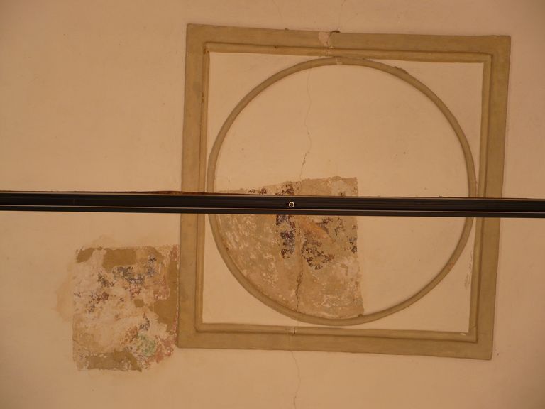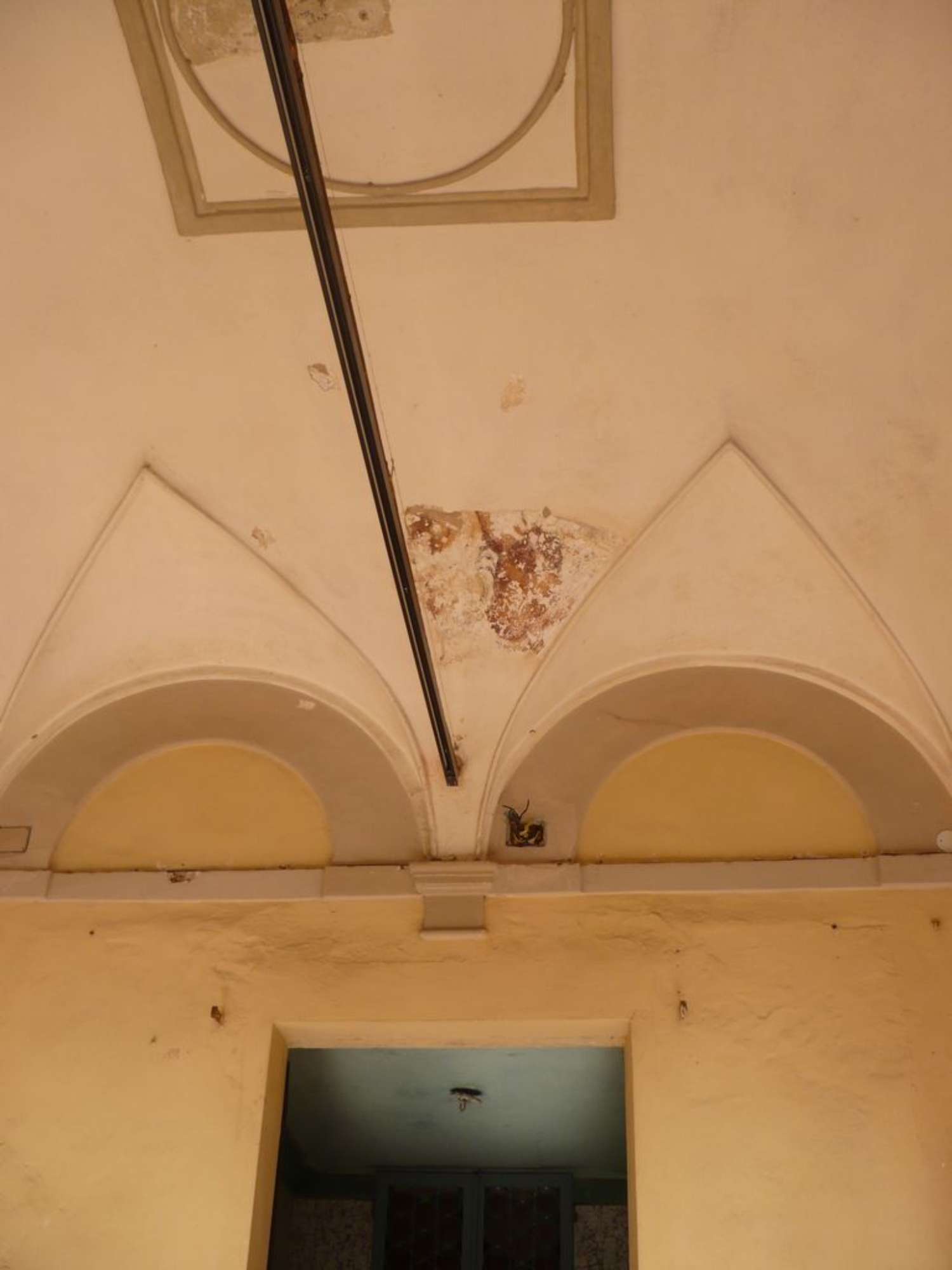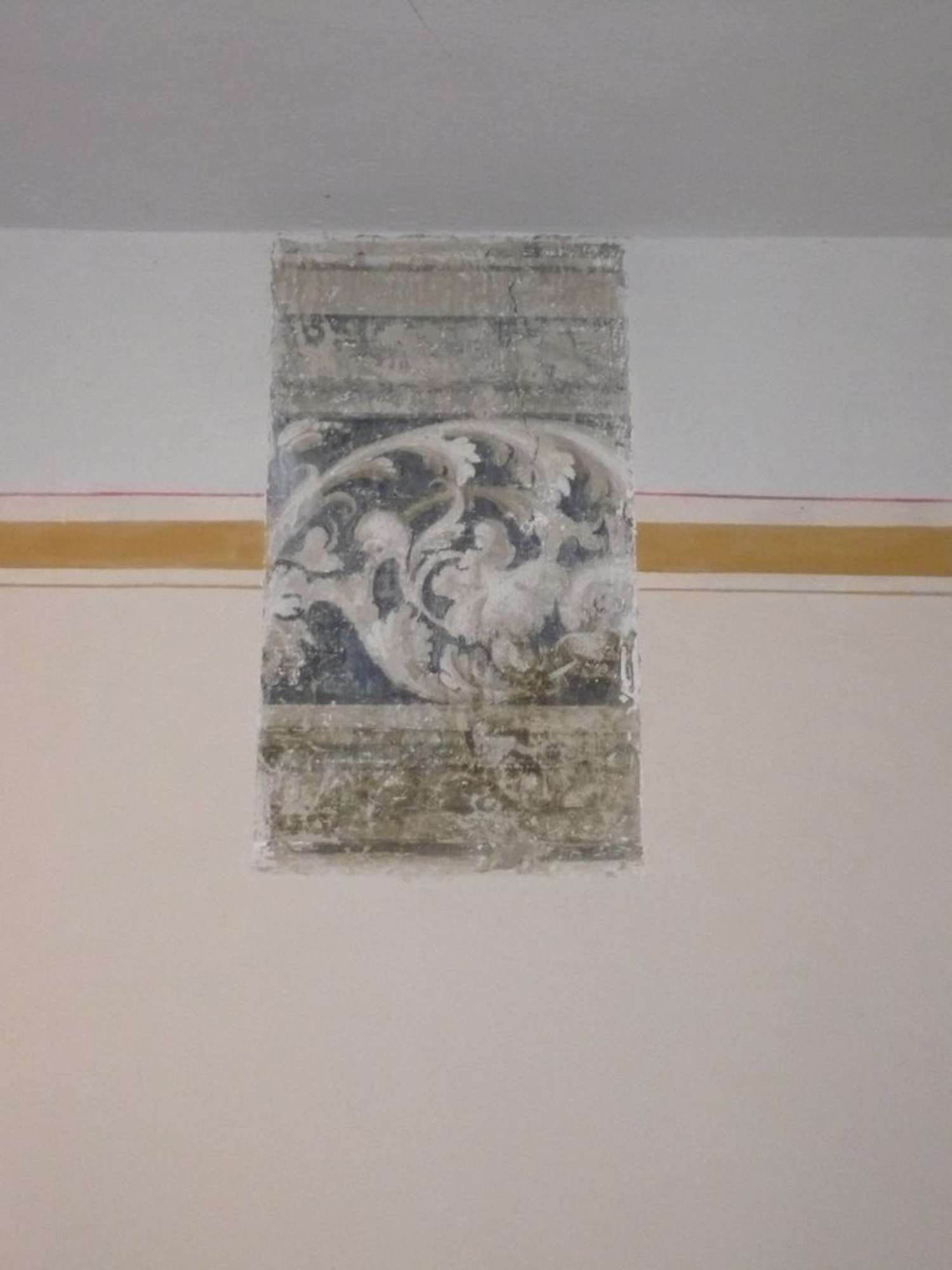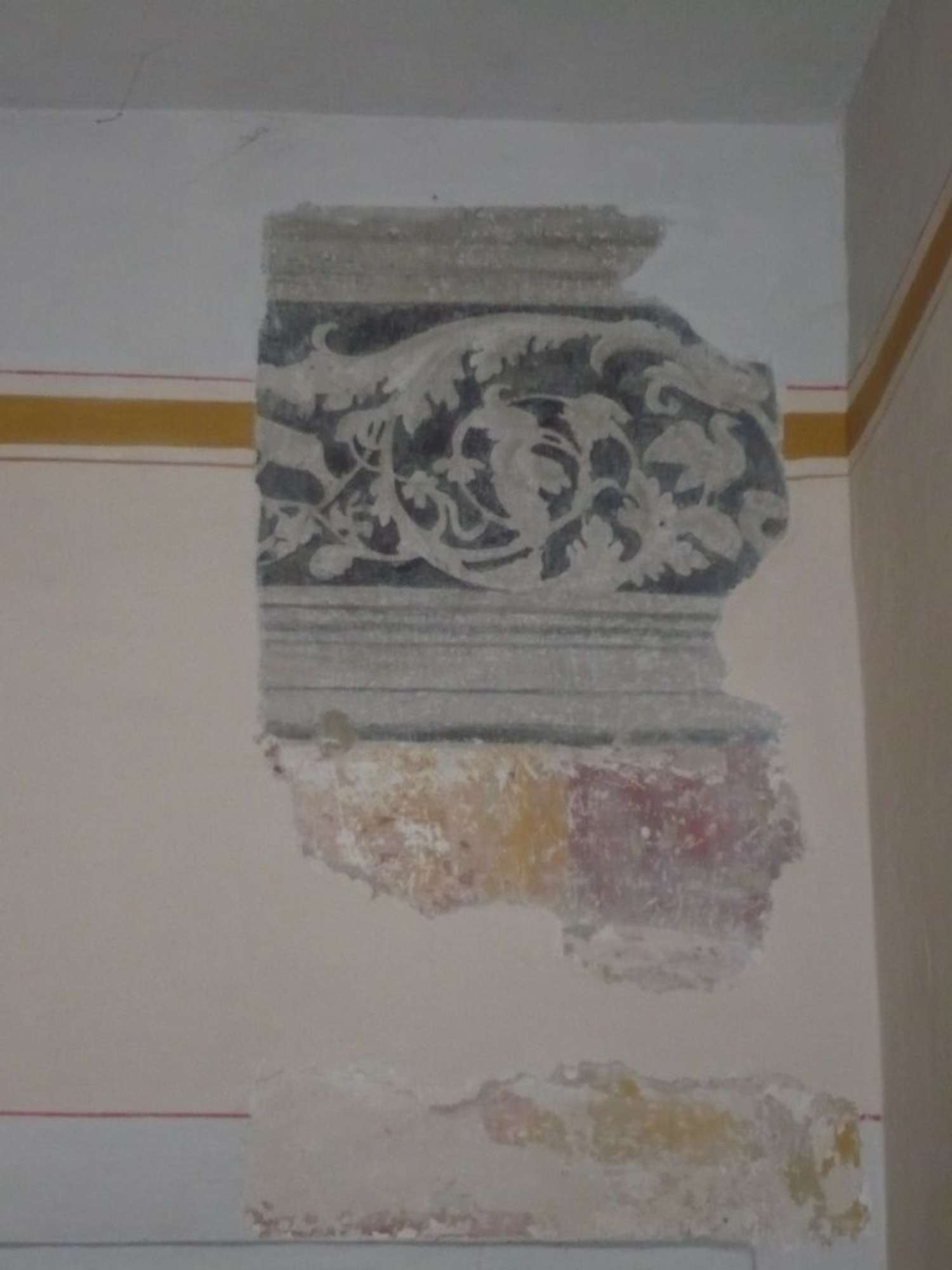 sulla fascia decorativa alta adiacente al soffitto proseguendo in senso verticale fino alla decorazione della probabile specchiatura della parete,