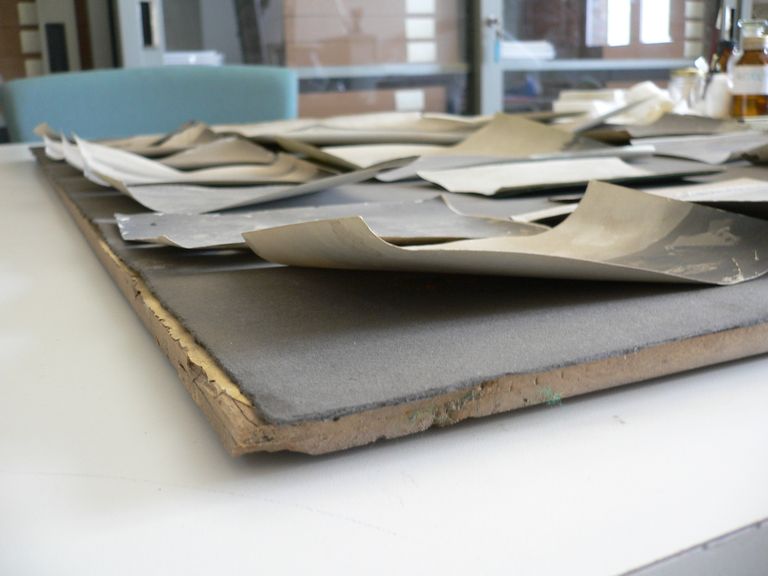 Frammenti cartacei e gli adesivi di montaggio sono stati rimossi con cataplasmi di metilcellulosa (Tylose MH P 300) dal verso delle stampe. Nel verso delle fotografie, vale a dire nel supporto primario, sono rinvenute scritte a matita, in genere si trattaa delle stesse scritte riportate in didascalia. Ogni informazione è stata comunque riportata nella scheda di restauro.