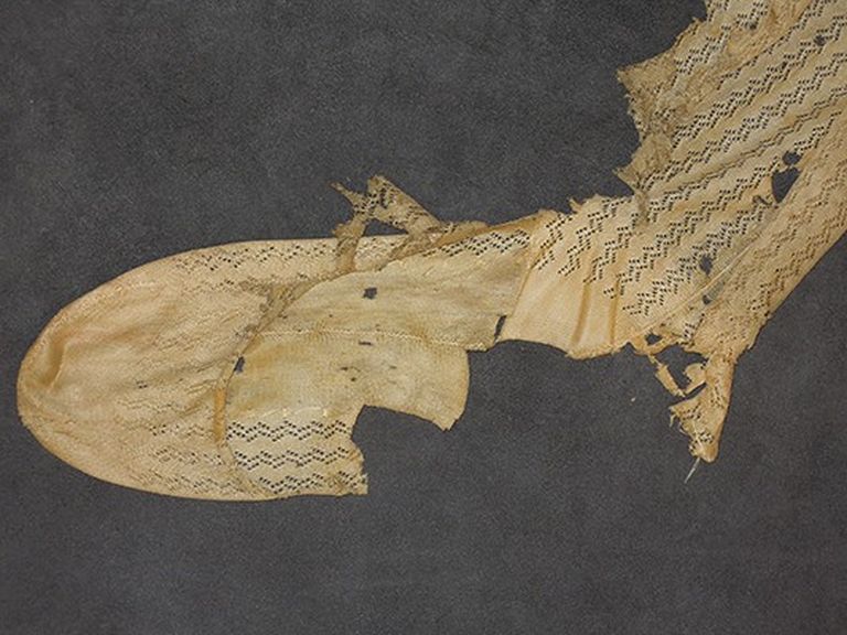 Restauro su supporto con filze e sottopunto di buchetti e lacerazioni sottoveste Fermatura slabbrature in vita sottogonna