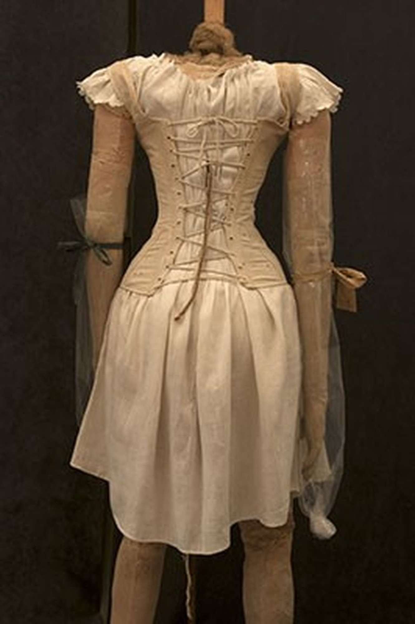 Il manichino è costruito su una struttura in ferro e legno che si è probabilmente rotta all'interno della figura, questa è stata composta da crine che ne compongono le fattezze del corpo e degli arti, questi sono ricoperti e da una maglina di seta color carne.