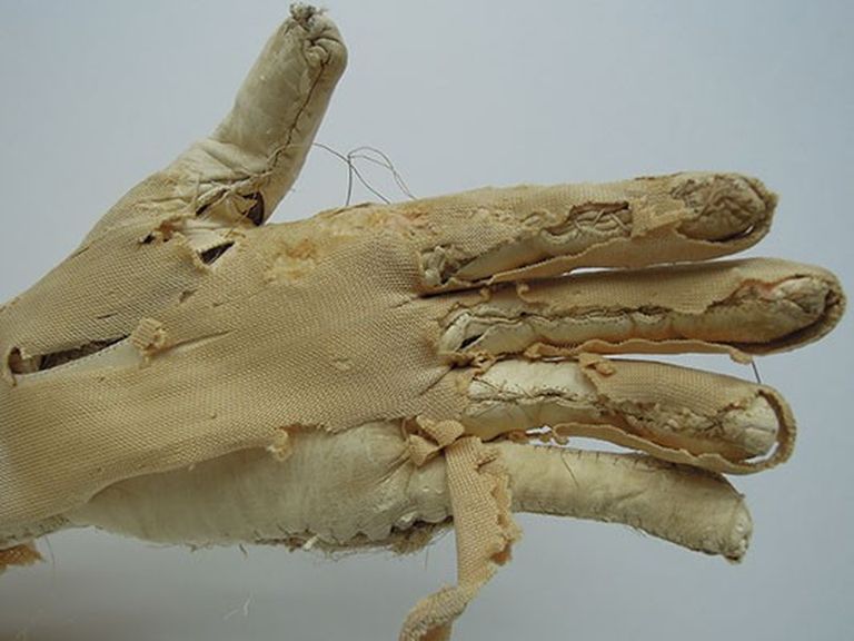 Fermatura brandelli maglina (pelle del manichino) di rivestimento sulle dita delle mani e