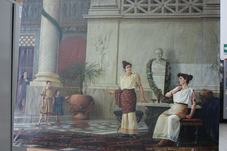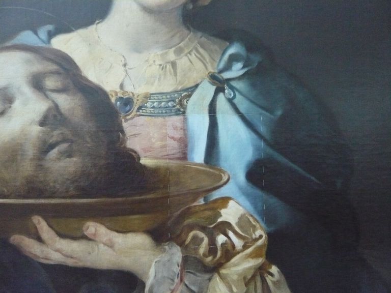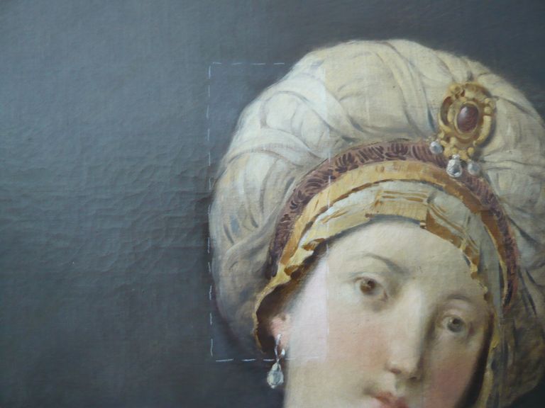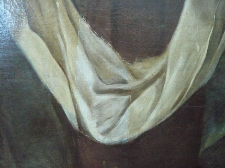 – saldatura con resina termoplastica (Textil) delle piccole lacerazioni riscontrate e chiusura dei piccoli fori rinvenuti con toppe in seta intonata cromaticamente alla tela di supporto e applicate mediante un film di resina termoplastica.