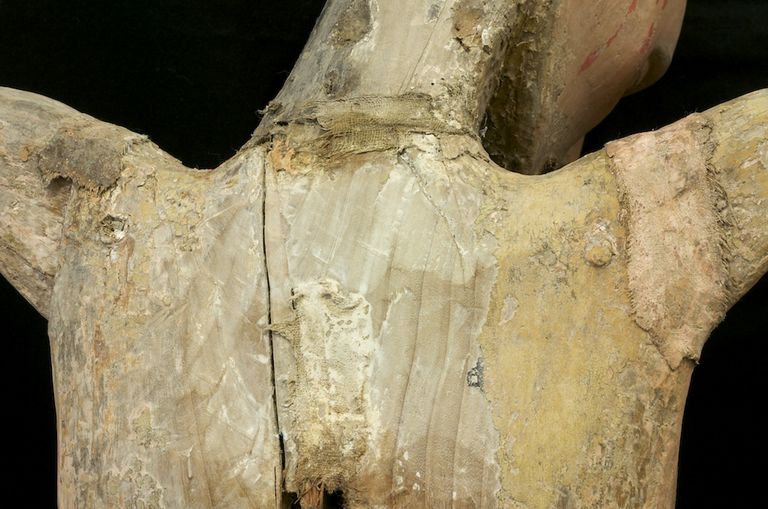 DA punto di vista strutturale il punto debole erano gli innesti di testa braccia: infatti queste applicate al busto con perni di legno e rinforzate con tela di lino successivamente gessate e dipinte, avevano perso la