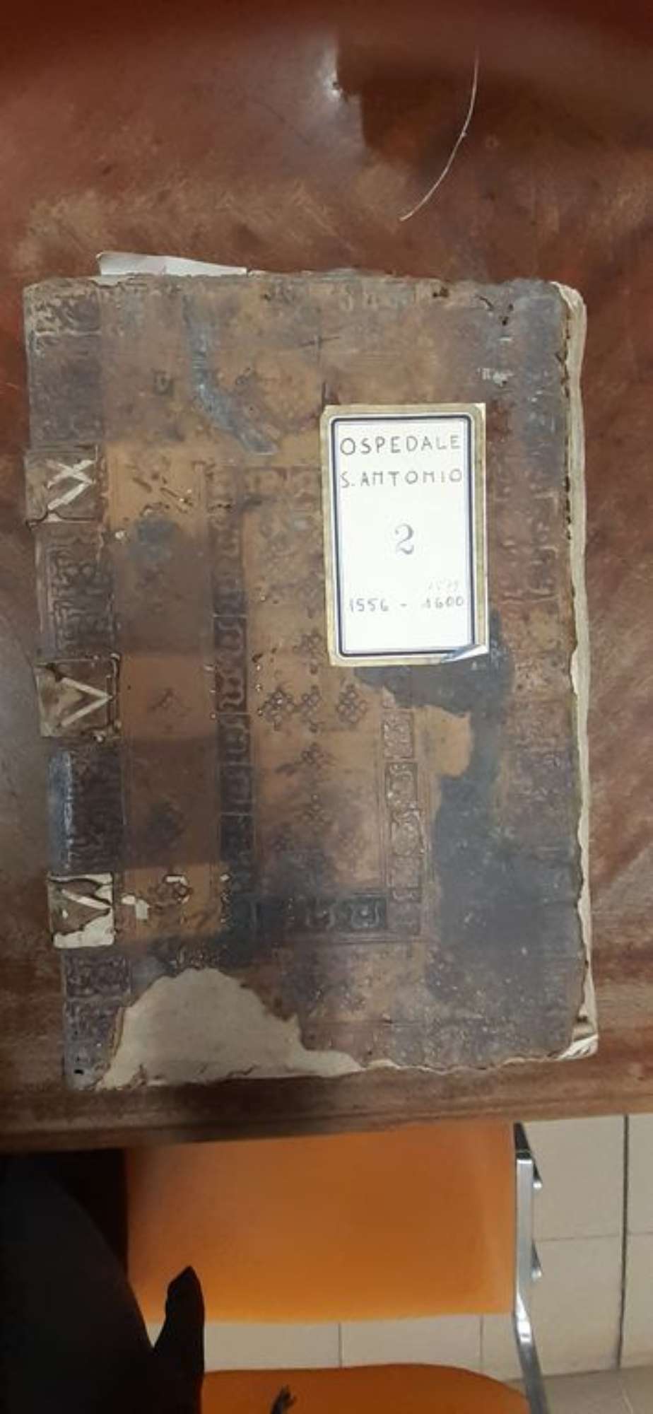 LUGO, ASC, Registro 2 - Fondo Ospedale di S. Antonio, coperta - ph. Archivio Storico Comunale di Lugo, 2022 - prima del restauro