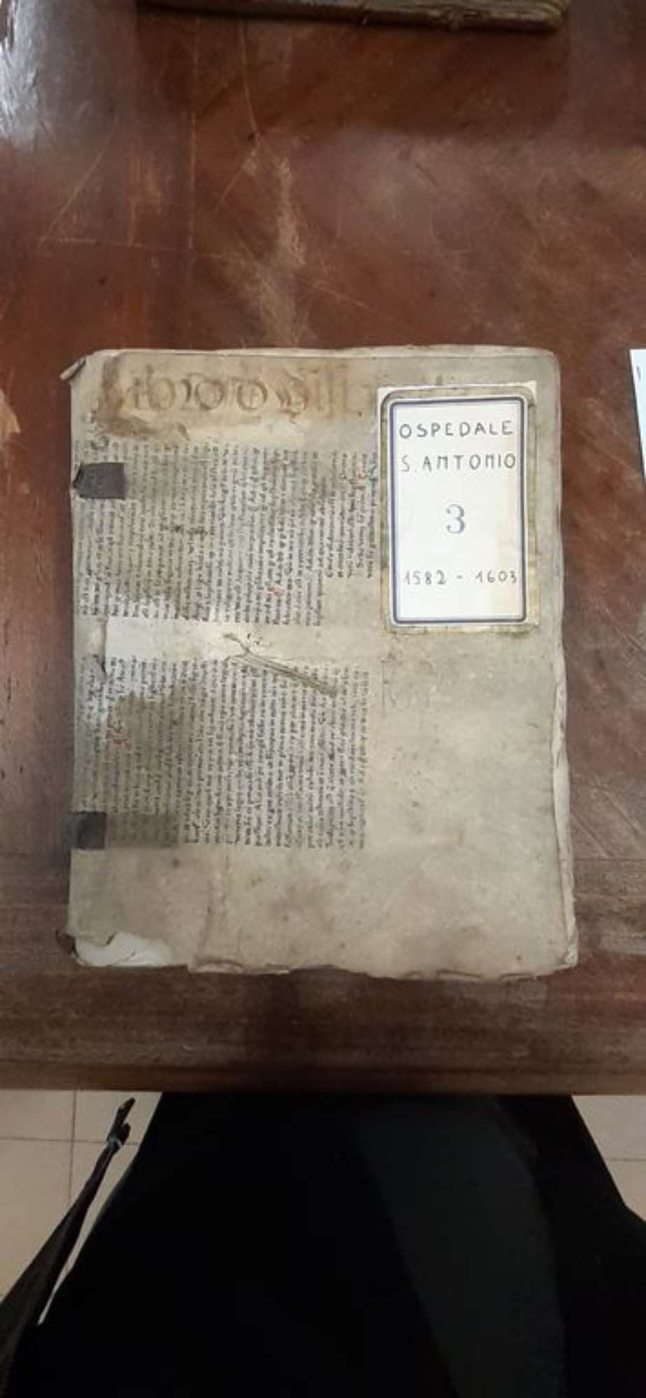 LUGO, ASC, Registro 3 - Fondo Ospedale di S. Antonio, coperta - ph. Archivio Storico Comunale di Lugo, 2022 - prima del restauro