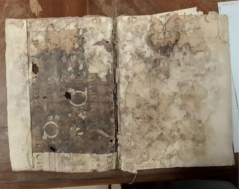 LUGO, ASC, Registro 1-5 - Fondo Ospedale del Limite, Interno  - ph. Archivio Storico Comunale di Lugo, 2022 - prima del restauro