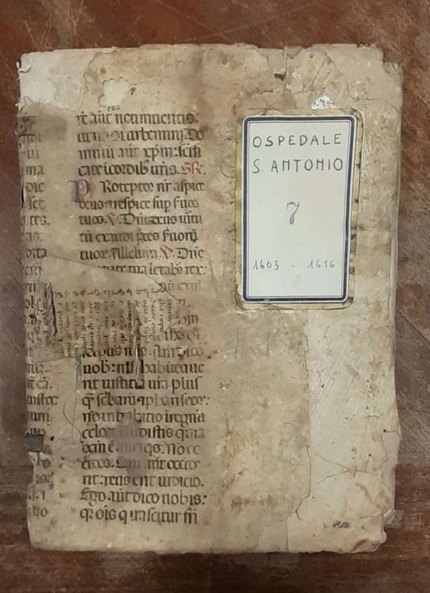 LUGO, ASC, Registro 7 – Fondo Ospedale di S. Antonio, coperta – ph. Archivio Storico Comunale di Lugo, 2022 – prima del restauro