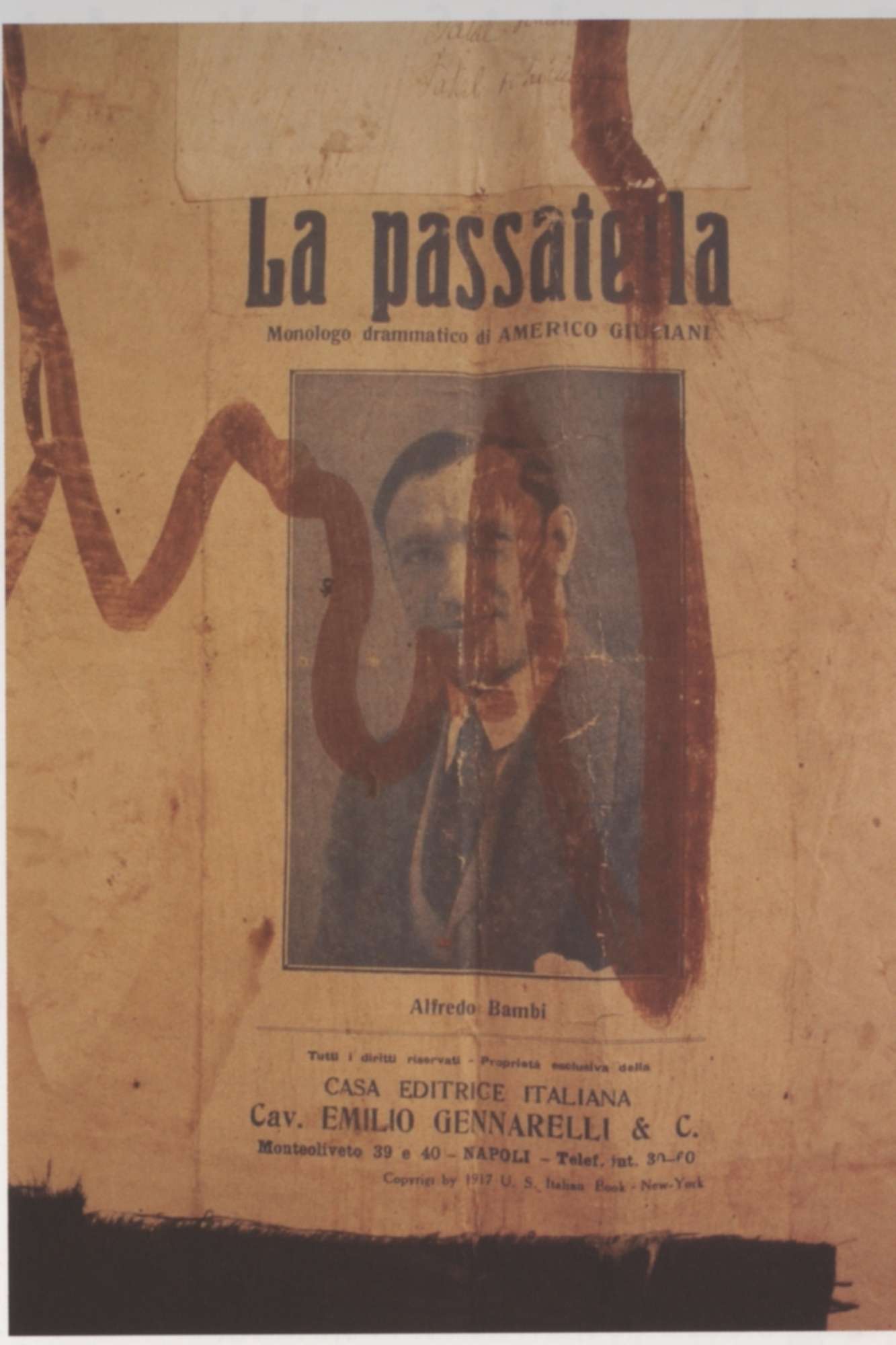 Disegno realizzato a tempera su carta fabbricata industrialmente, Il supporto è Costituito da due fogli sovrammessi tra loro di qualche cm.