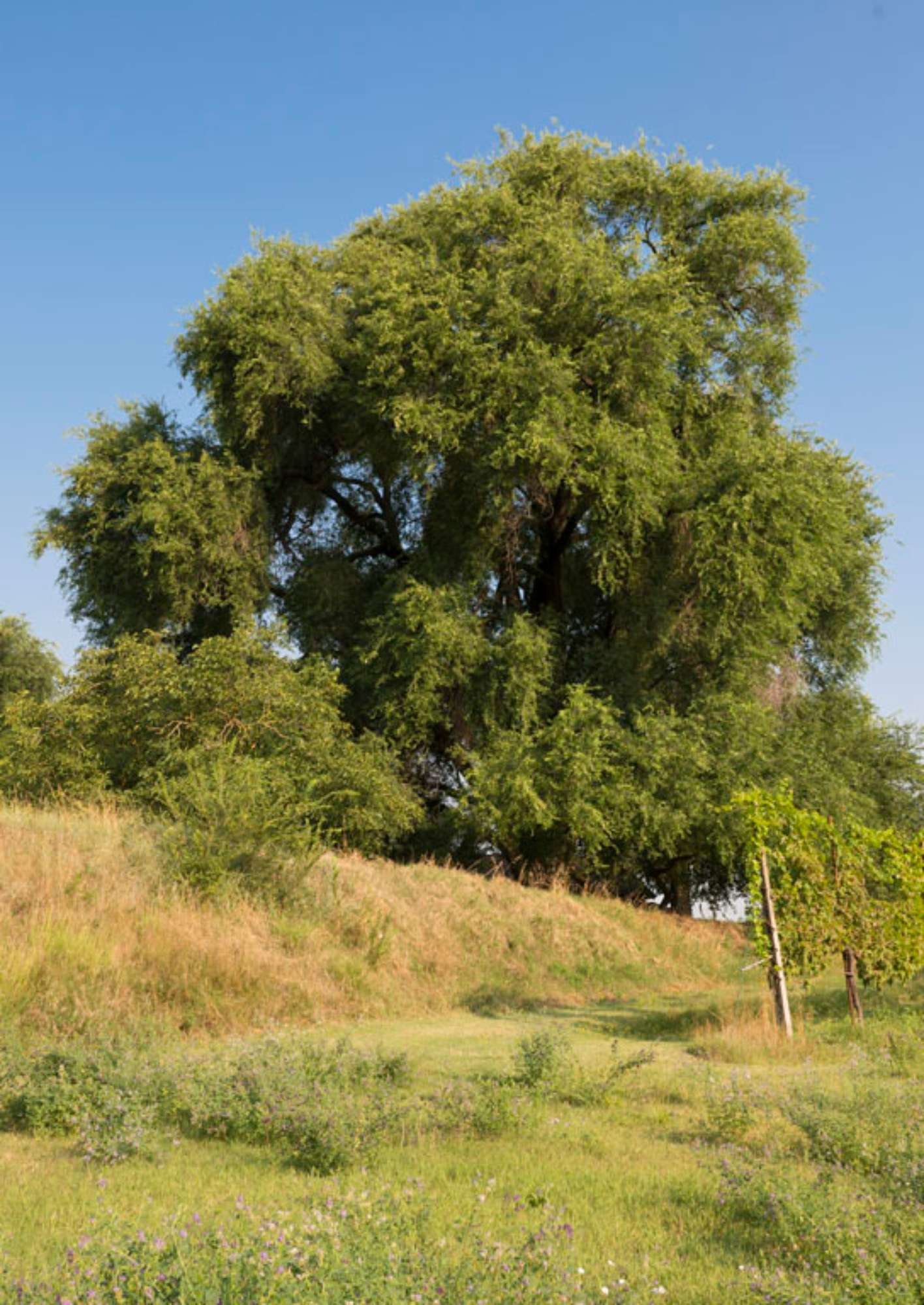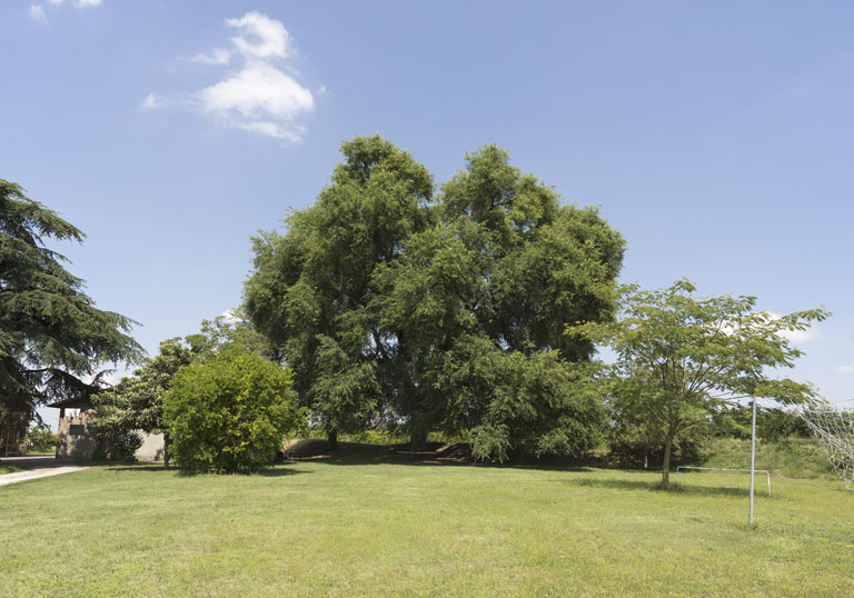 un argine, tra campi a seminativo e vigneti. È accessibile e la sua chioma globosa è ben visibile