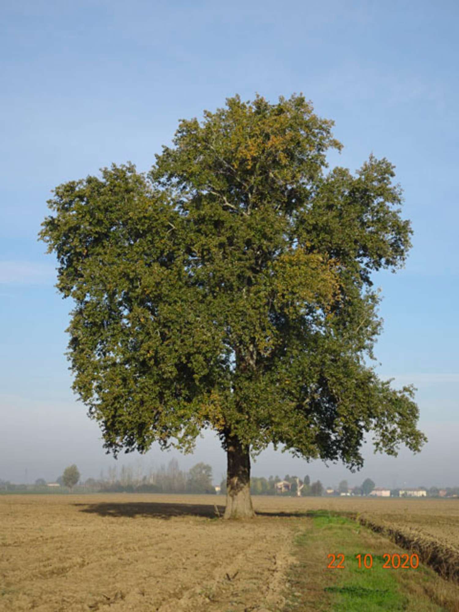 Ora emerge in assoluta solitudine nel piatto paesaggio agricolo circostante; ma fino a pochi anni fa era in compagnia di un altro pioppo bianco, più o meno delle stesse dimensioni, anch’esso riconosciuto monumentale d’importanza nazionale; occupava una analoga posizione spostato un po’ oltre lungo la stessa via Giovannini; qualche anno fa è stato colpito da un fulmine ed è morto.