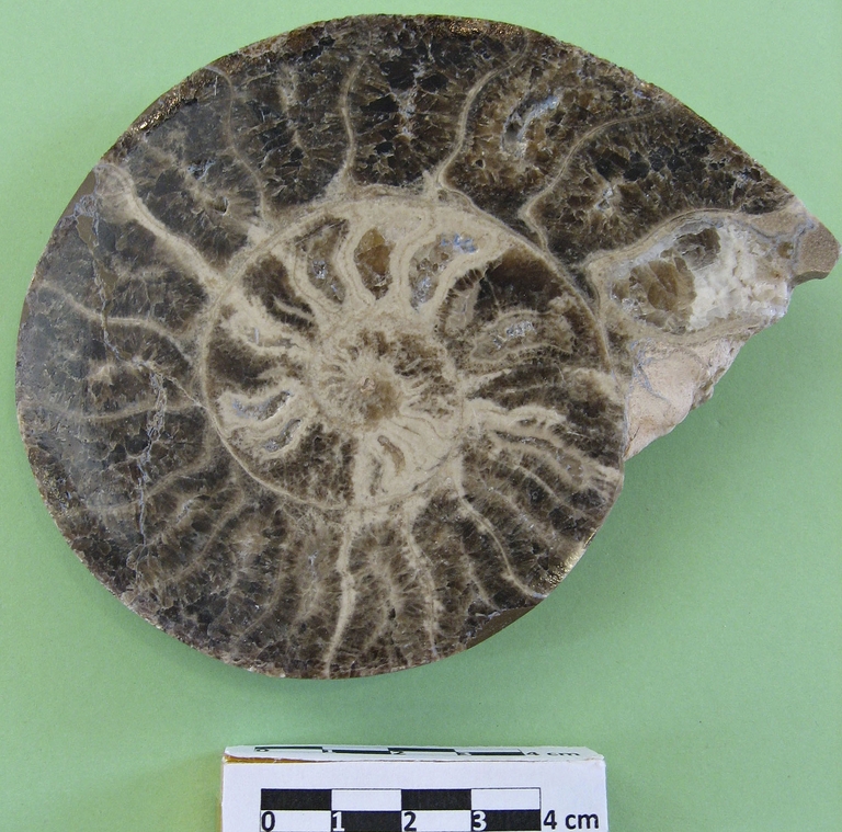 Modello interno di ammonite riempito di cristalli, porzione destra.