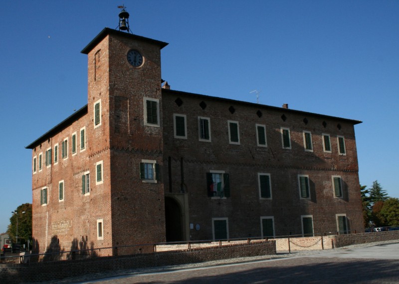 Posto all'estremità del borgo, l’edificio a base quadrata con due torri angolari, circondato da un fossato colmato e articolato attorno al cortile interno, ha conservato in gran parte la struttura trecentesca.