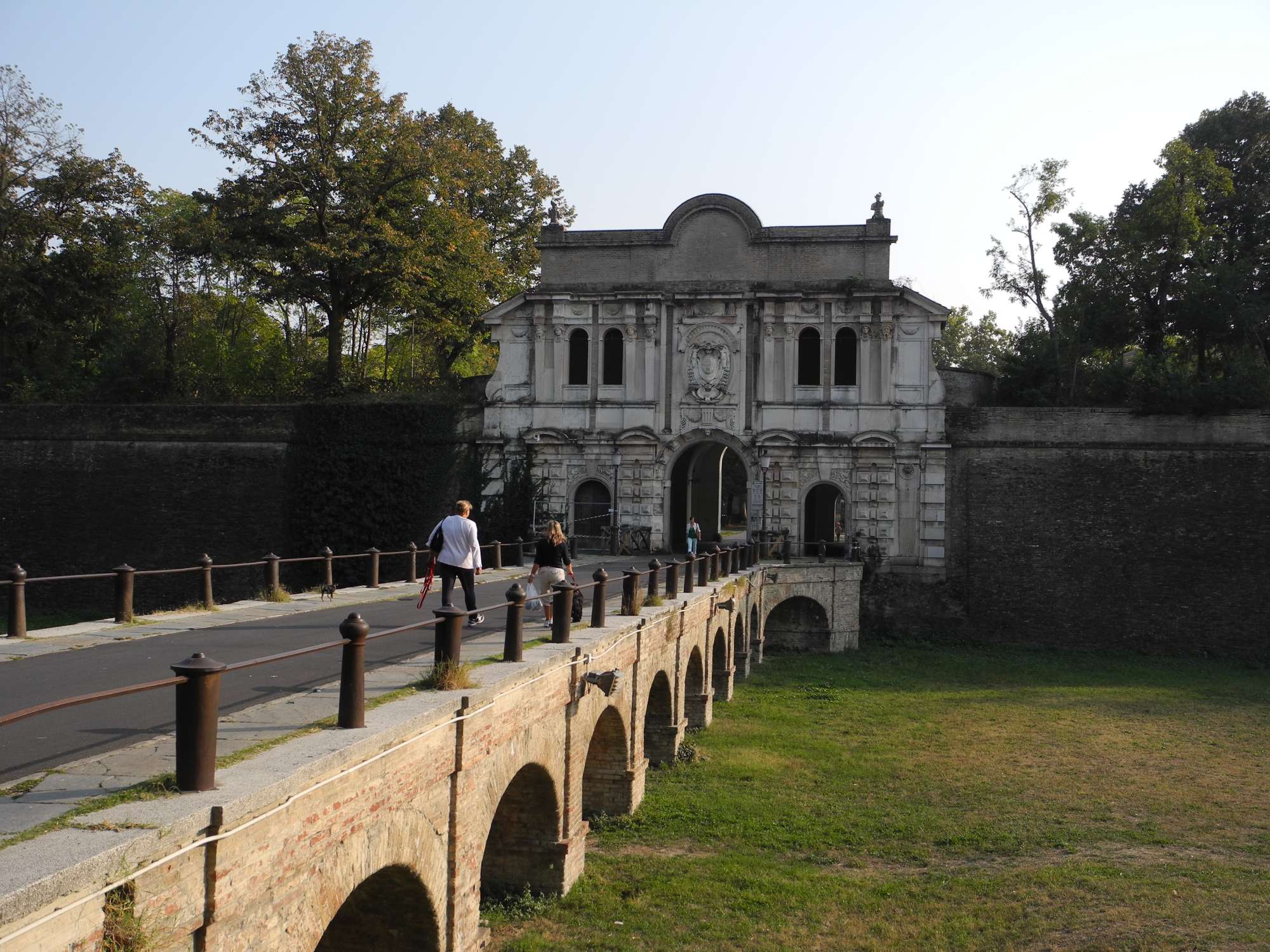Una muraglia raccordava la cittadella alle mura cittadine affacciate sul Parma; qui venne aperta la nuova porta urbana, nei cui pressi scorreva il canale Comune proveniente dalle colline, dove venne fatto confluire quello Maggiore deviato dall’area della nuova costruzione.