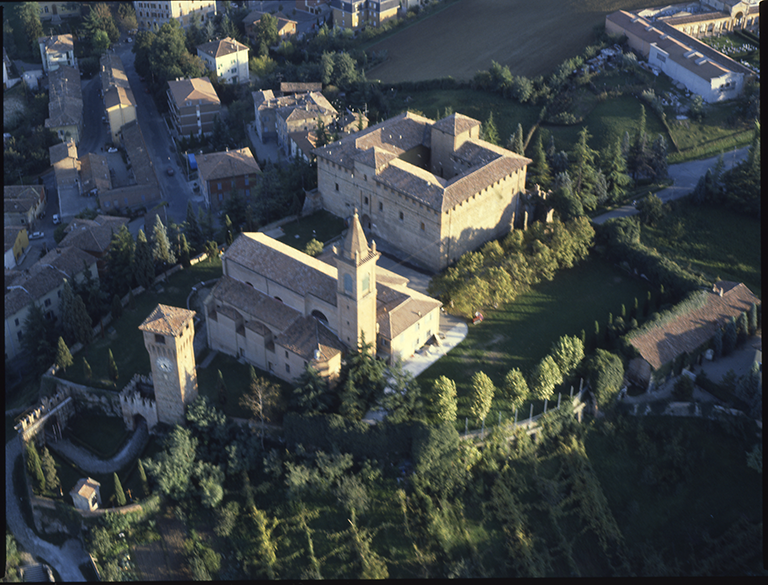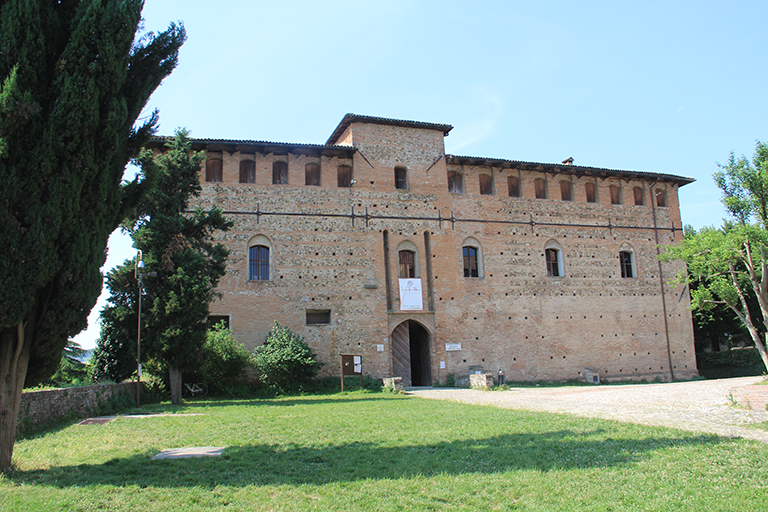 In posizione dominante sul borgo, la rocca isolata in cima al poggio, in parte circondata da mura e affiancata dalla chiesa di santo Stefano, mantiene l’impronta del palazzo bentivolesco, che del più antico edificio conserva la torre sud e l’ala attigua.