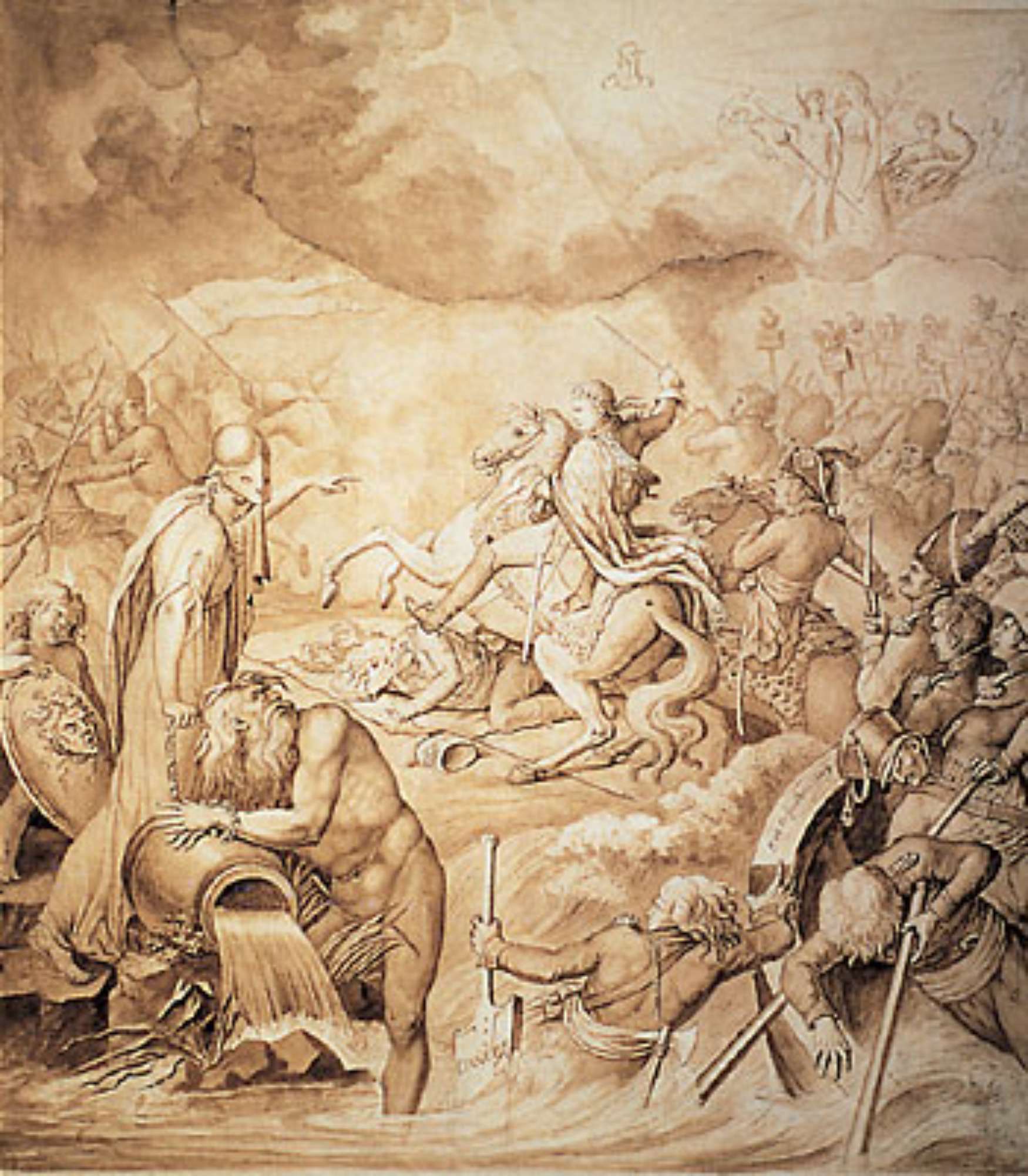 Disegno a matita acquerellata su carta raffigurante l'Allegoria delle vittorie napoleoniche (vittoria di Wagram, 5-6 luglio 1809).