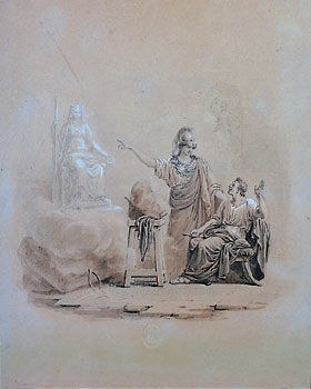Disegno a matita raffigurante l'Amazzone Mattei, la migliore copia in marmo esistente di un originale perduto di Fidia, realizzato in bronzo nella seconda metà del V secolo a.C.