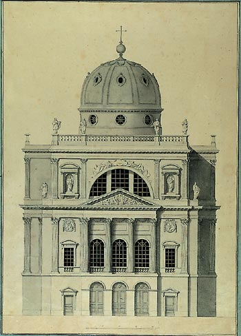 Influenzato dalla cappella reale di Versailles, il progetto, che non fu realizzato anche se condizionò il rifacimento intrapreso nel 1775, prevedeva un ambiente a croce latina, su due piani, coronato da una doppia cupola affrescata che risente forse della visione dei disegni di Soufflot per quella di Sainte Géneviève a Parigi; al fastigio dell'altare maggiore con San Lodovico di Francia in gloria si legava l'intenzione, poi deposta, di modificare l'intitolazione della cappella.