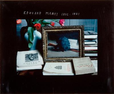 Nell'immagine sono ritratti su un piano alcuni oggetti: in primo piano tre libri (Renoir, Valery, Morisot) e un dipinto in cornice dorata; accanto al dipinto, sulla sinistra, un vaso in ceramica con quattro rose rosse, mentre sulla destra un ulteriore pila di libri.