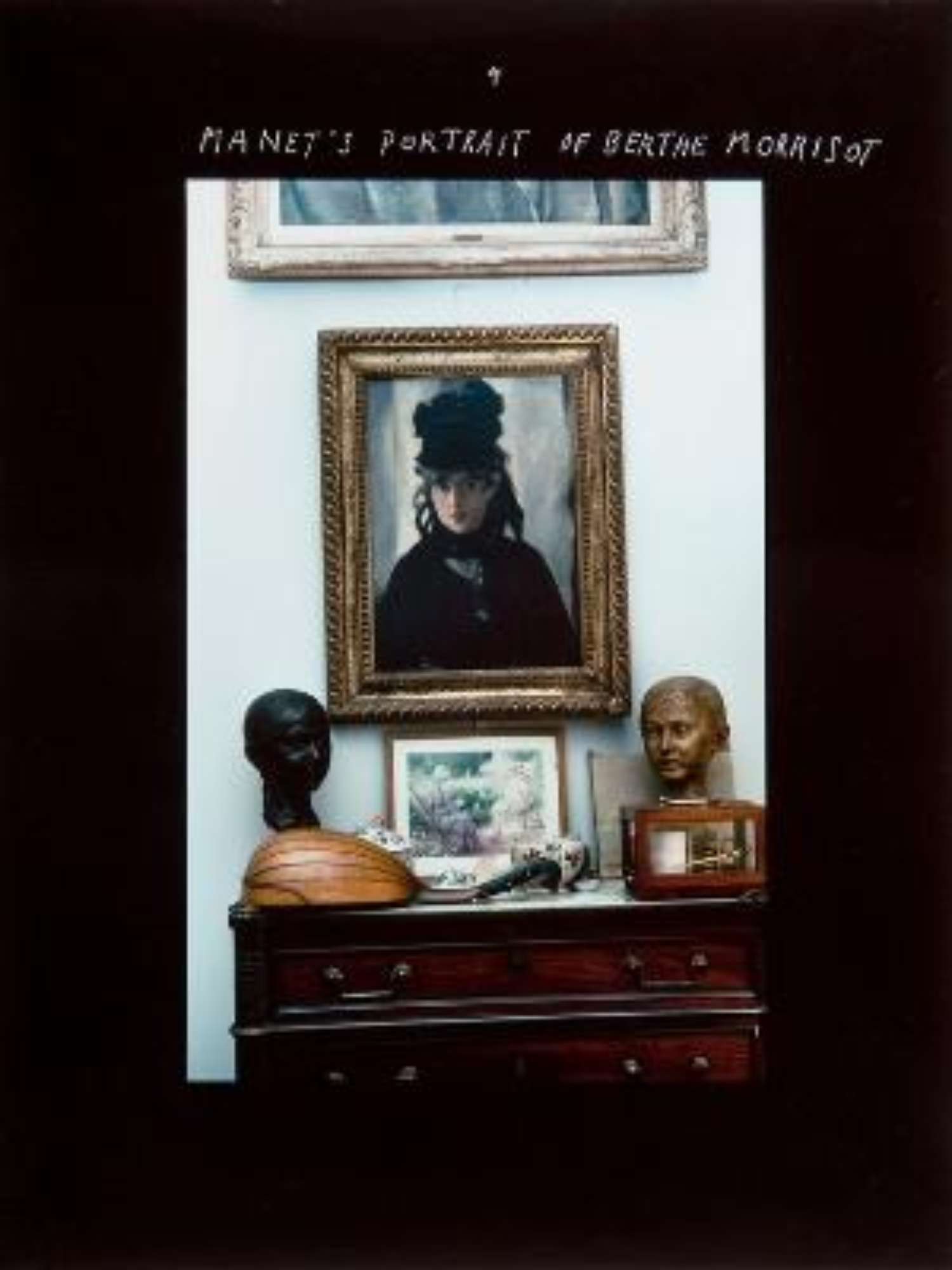 Centrale, sulla parete di fondo, è ripreso il ritratto di Berthe Morrisot, realizzato da Manet, in una cornice dorata. In alto è appeso un altro dipinto più grande, di cui però vediamo solo parte della cornice e della pittura. Sotto al ritratto un mobile scuro con dei tiretti, su cui sono poggiati alcuni oggetti.