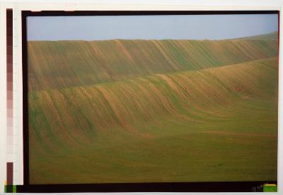 Paesaggio collinare sui toni del verde e del marrone. Le colline creano un movimento ondulato.