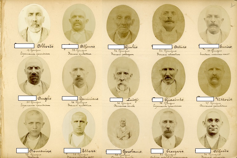 Fotografia realizzata per studio della fisiognomica, con annotazione del nome del paziente, data del ricovero e diagnosi. Solitamente la fotografia veniva scattata il giorno di ingresso al San Lazzaro. La prima fotografia dell'album è datata 4 maggio, l’ultima 31 dicembre.