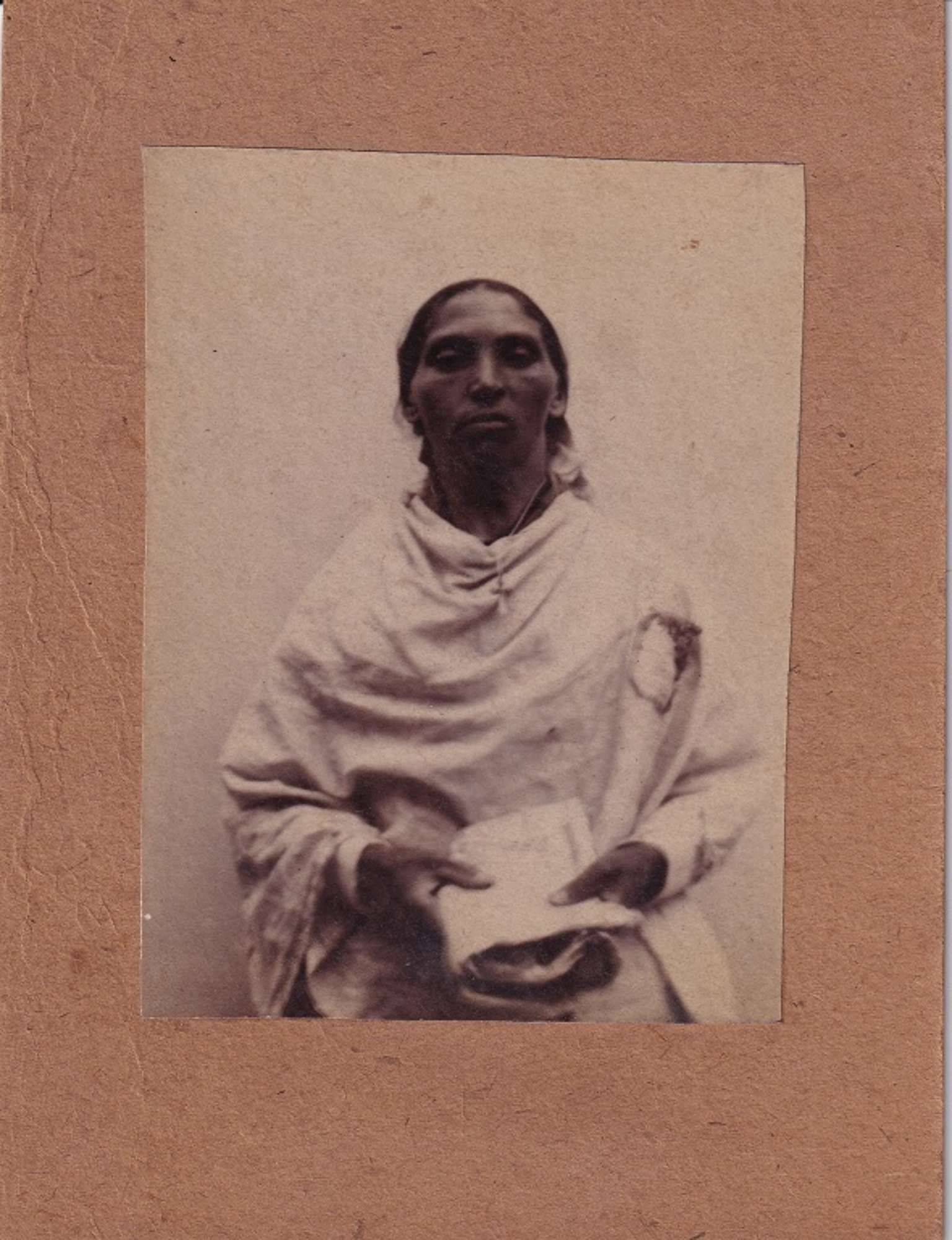 Fotografia realizzata per studio della fisiognomica, con nome e diagnosi annotati sul retro